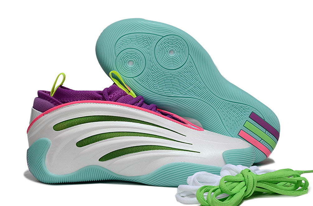 O adidas Harden Vol. 9 Jalen Williams White Lucid Lime Pink representa a evolução do jogo rápido: leitura instantânea, mudança de ritmo e execução limpa. É um modelo desenhado para jogadores que atacam o espaço com inteligência, jogam em transição e resolvem no detalhe — exatamente o perfil de Jalen Williams.