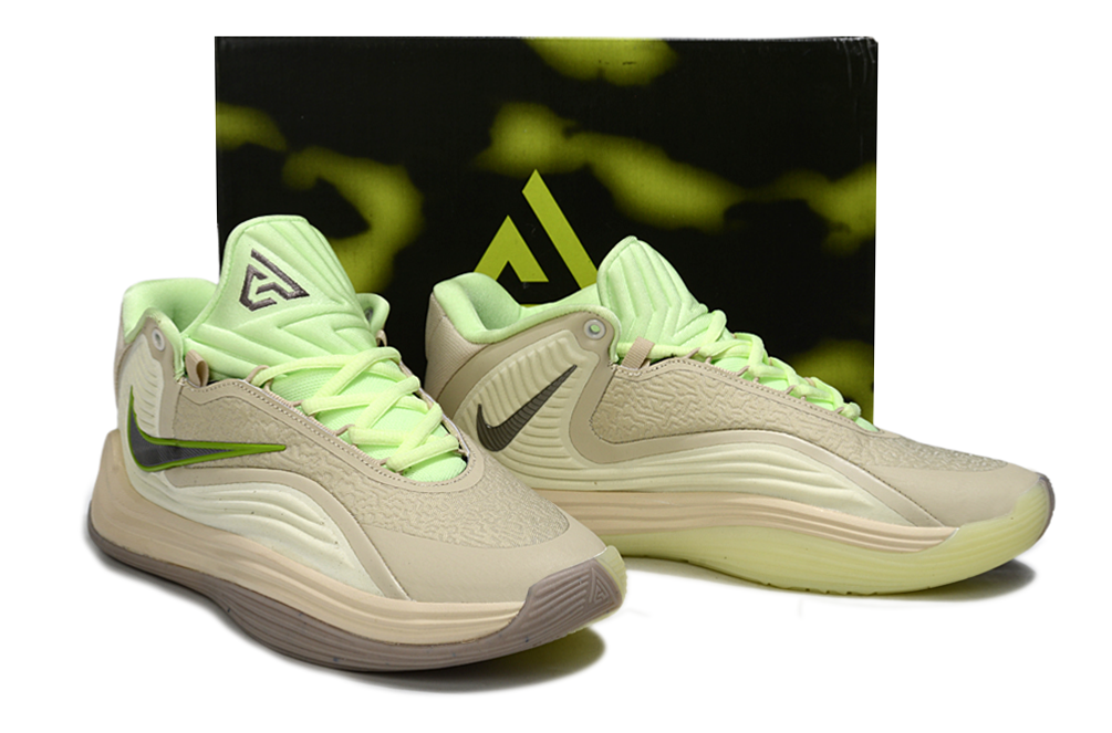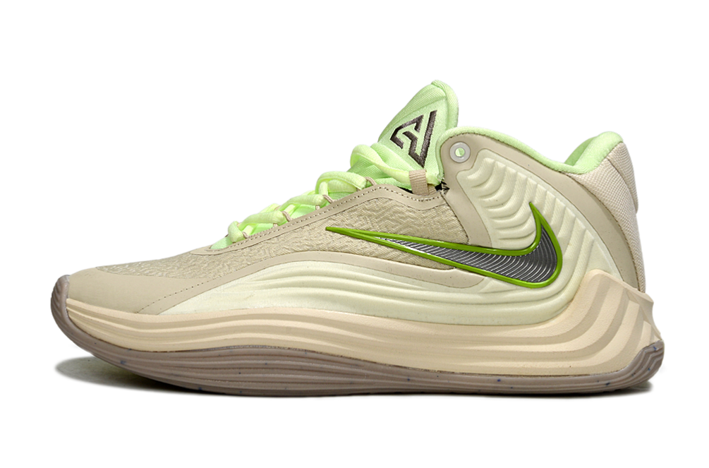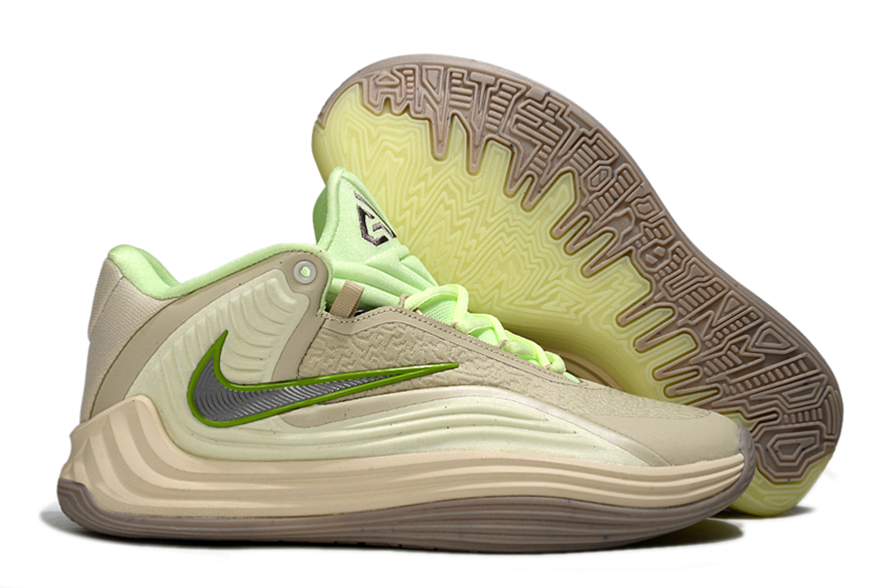 A colorway em tons de khaki e alabastro, contrastada com detalhes Volt nos cadarços, forro e Swoosh, entrega um visual limpo, moderno e estratégico. É discreto no primeiro olhar, agressivo quando entra em ação. Um tênis que parece calmo… até o primeiro passo explosivo.