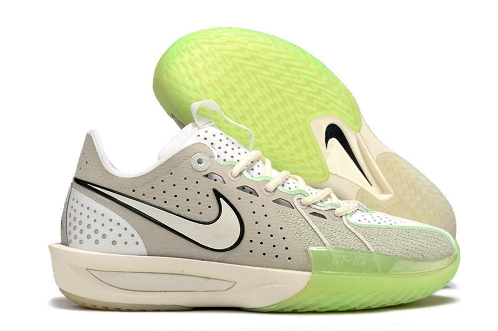 A colorway Vapor Green mistura base clara em tons neutros com verde translúcido na região do solado, criando um visual técnico, limpo e extremamente moderno. É estética funcional: nada exagerado, tudo pensado para quem entende o jogo.