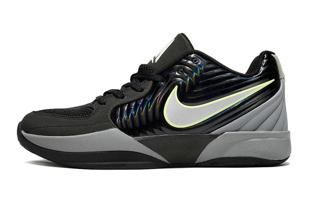 Essa colorway em preto e cinza ("Night Vision") entrega uma estética sóbria e técnica, com um Swoosh iridescente em tom de limão claro que adiciona um efeito de brilho sutil, remetendo à visão noturna. Aqui não existe excesso visual — cada linha, cada camada e cada contraste foi pensado para performance real. É o tipo de tênis que fala pouco, mas entrega muito.