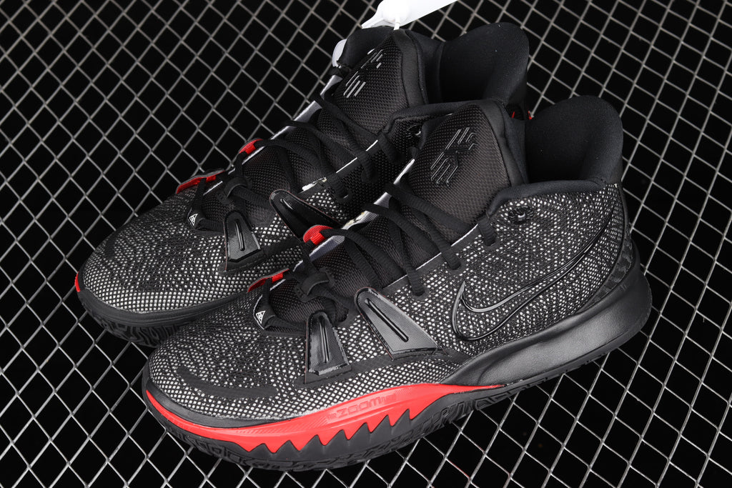 O Nike Kyrie 7 Bred é essencial, agressivo e direto ao ponto. Uma colorway clássica que não precisa de explicação — preto dominante, acentos em vermelho intenso e presença total em quadra. É o Kyrie para quem joga sério, controla o ritmo e decide no momento crítico.