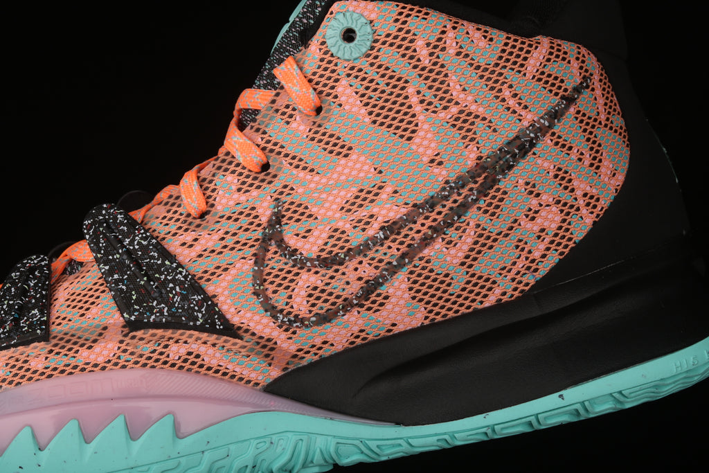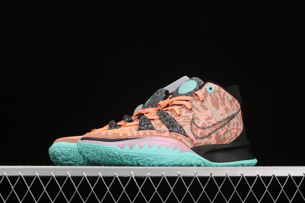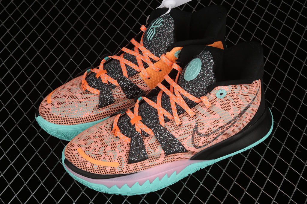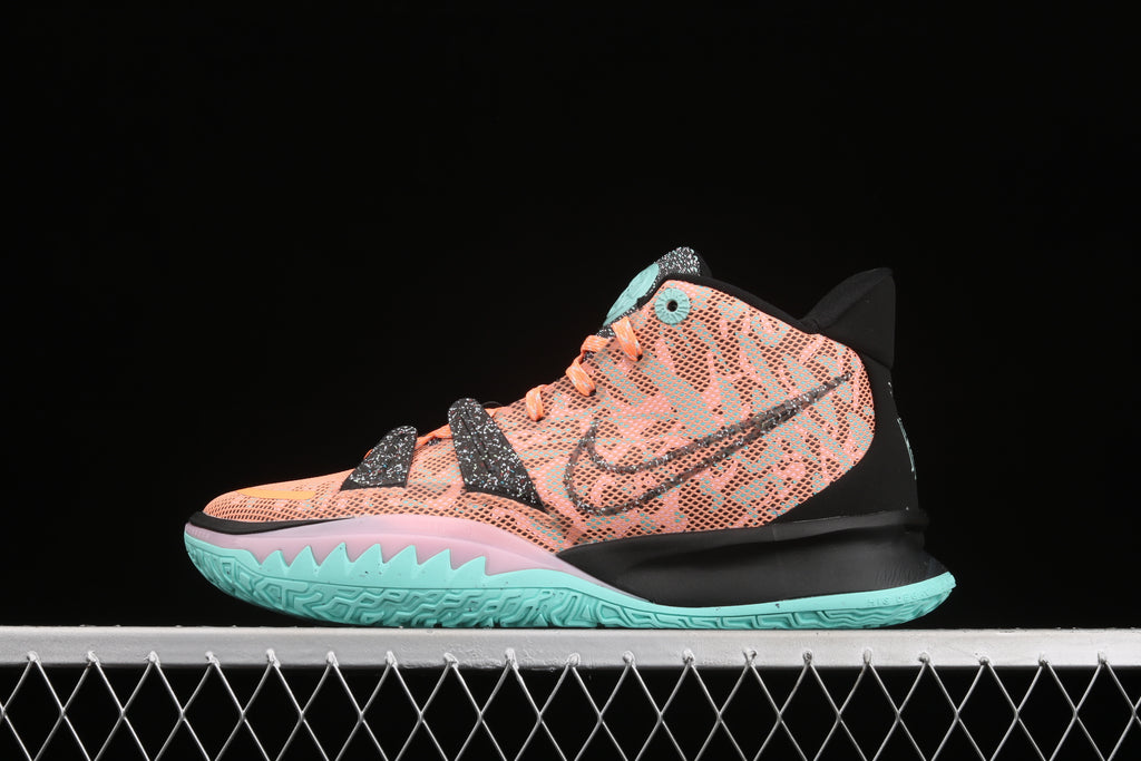 Na parte técnica, o Kyrie 7 segue entregando alta performance. A unidade Zoom Air no antepé oferece resposta imediata e explosão controlada, ideal para acelerações curtas, hesitações e finalizações rápidas. O solado com tração multidirecional sustenta o jogo em múltiplos ângulos, mantendo controle absoluto em giros e pivôs.