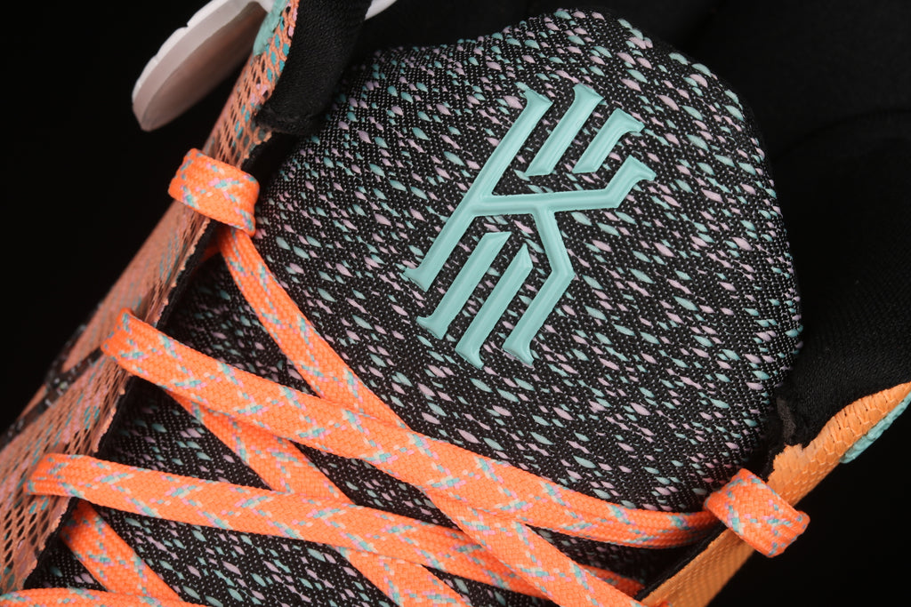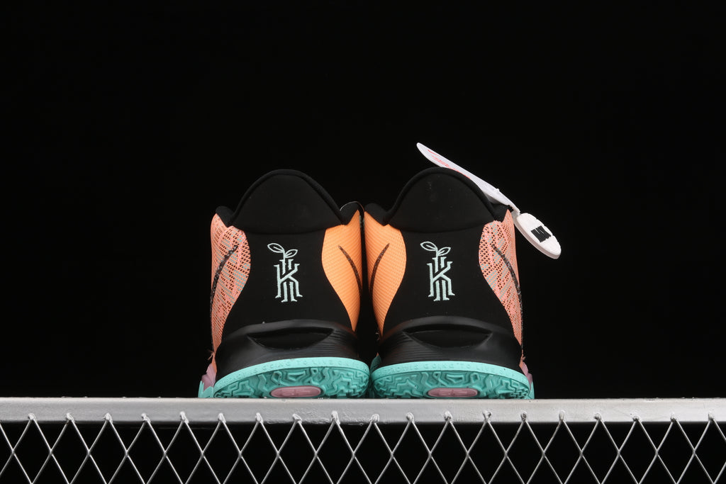 O grande diferencial está no calcanhar em nobuck preto, que recebe o logo Kyrie acompanhado de folhas brotando, símbolo direto da mensagem Play for the Future. Não é só estética — é posicionamento, visão e propósito.