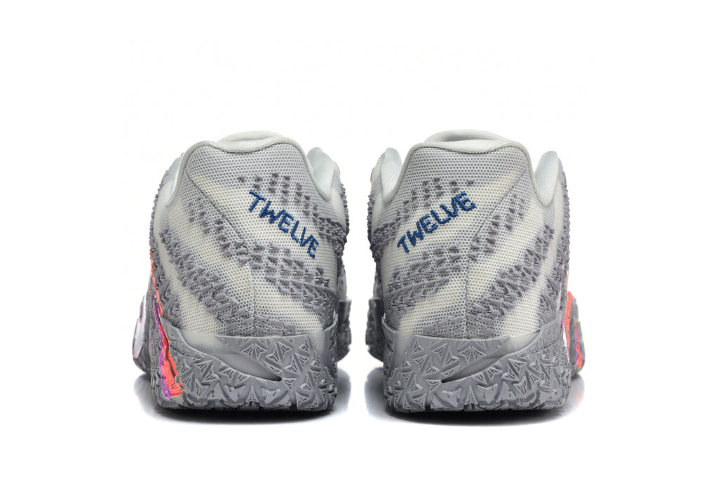 Essa colorway aposta em uma base clara e técnica, contrastada por grafismos vibrantes — Swoosh azul com fúcsia e o “A” oversized em laranja — remetendo a luzes, energia e impacto visual. Não é só estética: é presença. Um tênis que entra em quadra sabendo que todos vão olhar.